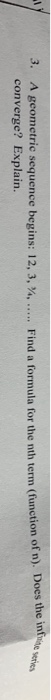 But doing it the other way around is in this article, you will learn how to induce the patterns of sequences and write the general term general term of arithmetic and geometric series. Simply insert the values of a, r and n in this formula and evaluate the resulting expression to get the nth term.4 x you would also have to know r, the common ratio between consecutive terms. So the nth term is 2n + 5. Since, the nth term of a geometric sequence is First, no matter how many terms of this series we add, the total will never exceed 100.